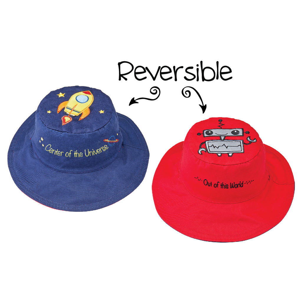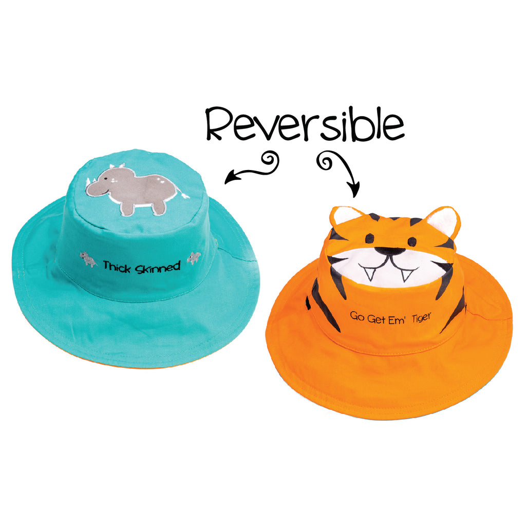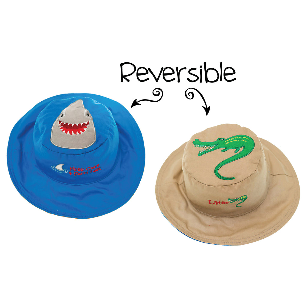 Our reversible, UPF 50+ kids sun hats offer 99% protection from the sun’s harmful rays. Made of super soft 100% cotton, our fun designs and fabulous embroidery and patchwork details are sure to turn heads! Reversible chin straps (for small and medium sizes) keep the FlapJackKids hat secure on your child's head, even on windy days. Older kids are happy to be chin strap free! What's not to love?