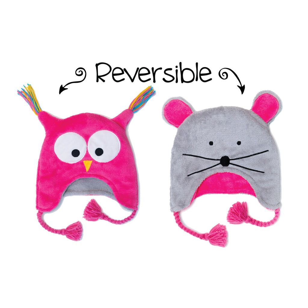 Keep your little one toasty and warm all winter long with our adorable reversible sherpa hat. Made with soft, double-layered sherpa fleece, this two-in-one design offers double the fun with a whimsical creature featured on each side. Parents will love the quality and warmth while kids will love expressing their individuality with the playful characters. Be a wolf one day, a rad skier the next!